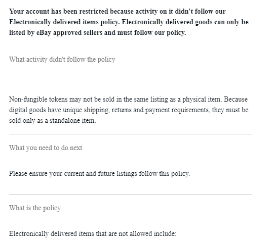 I’ve flirted with eBay’s rules in the past, and experience told me not to risk it going forward. I was advised this by email: